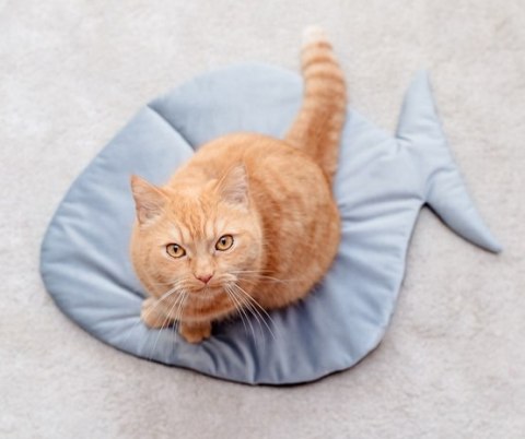 Mata w kształcie rybki to niezwykle urocze legowisko dla Twojego kociaka. Można korzystać z niej w dowolnym miejscu czy to na podłodze – tu sprawdzi się wypełnienie maty ociepliną, która świetnie izoluje od podłoża. Na kanapie zadziała jako zabezpieczenie przed zadrapaniem. Legowisko dla kota w kształcie rybki na pewno będzie bardzo komfortowe dla zwierzaka. Produkt dodatkowo jest niezwykle atrakcyjny wizualnie, dzięki użyciu wysokiej jakości aksamitu. Z pewnością wielkim atutem materiału jest jego miękkość, ta oczaruje nie tylko kota.