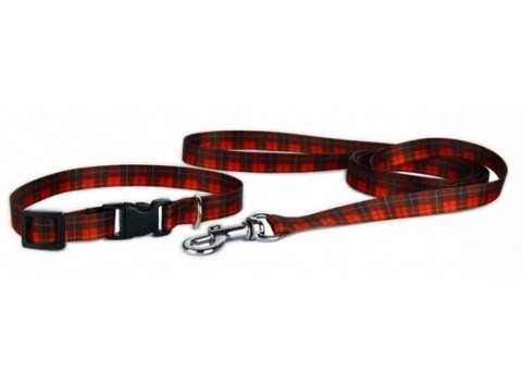 Smycz o kraciastym wzorze utworzonym z krzyżujących się różnej szerokości i barwy pasów, przebiegających w takim samym porządku zarówno wzdłuż osnowy, jak i wątku. To ponadczasowy wzór, który będzie doskonałym wyborem!