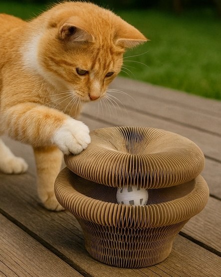 Składana konstrukcja umożliwia złożenie drapki w cztery różne konfiguracje, zapewniając różnorodne możliwości drapania dostosowane do potrzeb kota.